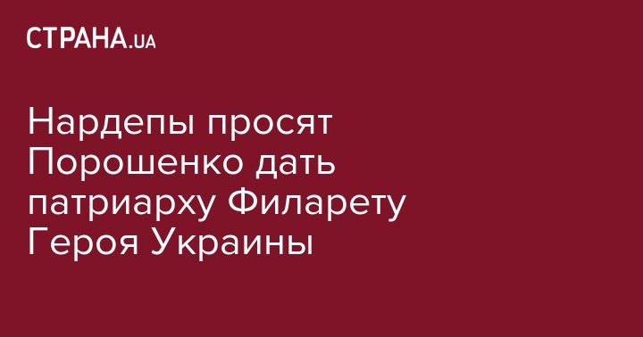 Народные депутаты зарегистрировали в Верховной Раде проект постановления о присвоении предстоятелю Украинской православной церкви Киевского патриархата, Патриарху Киевскому Филарету звания Героя Украины. Проект постановления № 6153 зарегистрирован на сайте парламента, но текста документа пока нет.