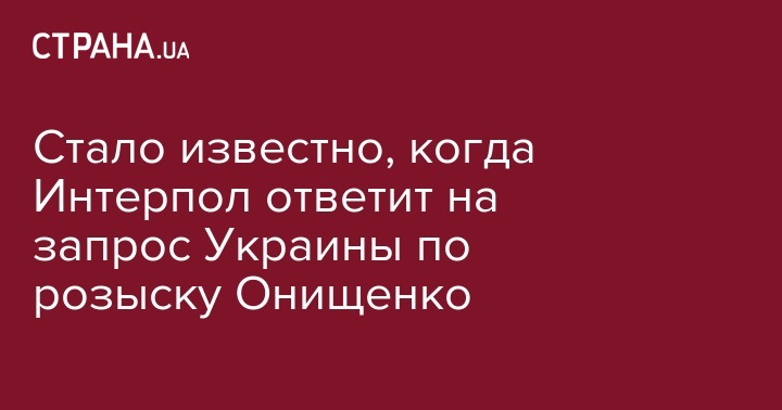 Украина ожидает ответ от международного бюро Интерпола об объявлении народного депутата Александра Онищенко в международный розыск в начале апреля. Об этом в комментарии УНН сообщил пресс-секретарь Национальной полиции Украины Ярослав Тракало.
