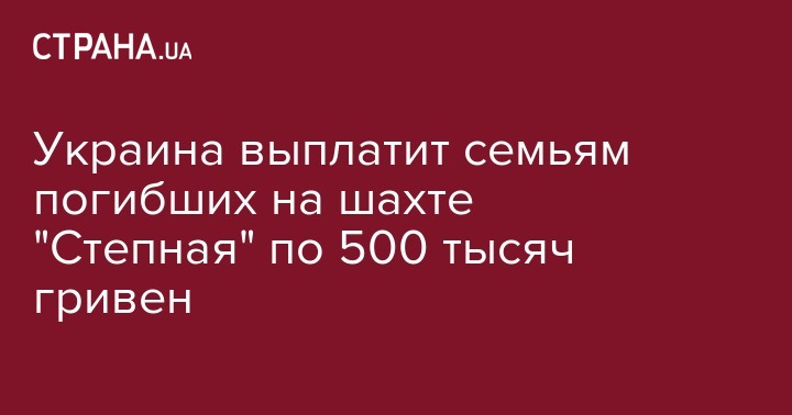Украина выплатит семьям погибших на шахте "Степная" по 500 тысяч гривен