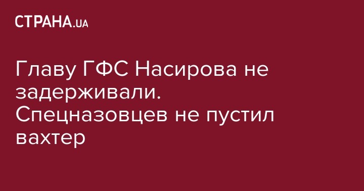 Как сообщили источники "Страны" в НАБУ, главу ГФС Романа Насирова не задерживали. Один из руководителей ГФС сказал "Стране", что Насирову даже не вручили подозрение. "К нему просто их не пустили", - сказал источник.