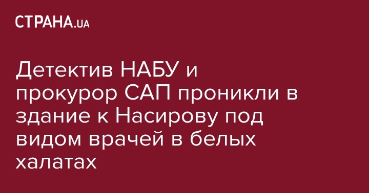 Как сказали адвокаты Насирова, детективы смогли зайти в здание под видом врачей - они где-то нашли белые халаты. Впрочем, по словам адвокатов, далеко они не продвинулись и к Насирову еще не попали. "Сейчас торгуются, как им пройти дальше", - сказал адвокат, добавив, что в здании находятся также один из их коллег и представители полиции.