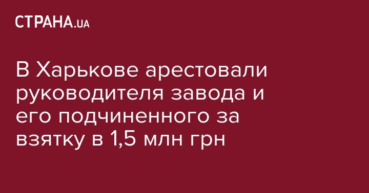 В Харькове 3 марта арестовали руководителя завода и его подчиненного, задержанных за вымогательство 1,5 млн грн. Об этом сообщает пресс-служба прокуратуры области.
