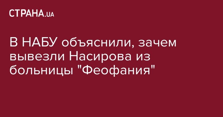 В НАБУ объяснили, зачем вывезли Насирова из больницы "Феофания"