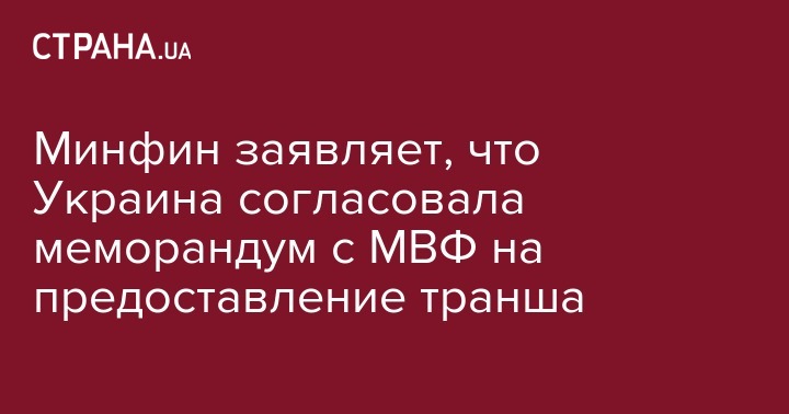 "Мы достигли staff level agreement с МВФ о пересмотре программы сотрудничества и вынесении вопроса о выделении следующего транша на рассмотрение Совета директоров фонда", - написал Данилюк.