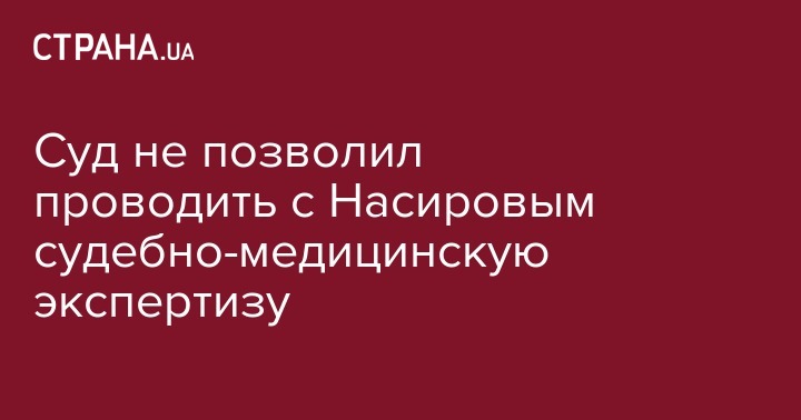 "Суд отказался удовлетворить ходатайство адвокатов Насирова о проведении суд мед экспертизы для выяснения состояния здоровья Насирова и его способности присутствовать на заседании. Причина отказа - недостаточно доказательств. Судья не увидел оснований для этого", - сообщает собкор "Страны".