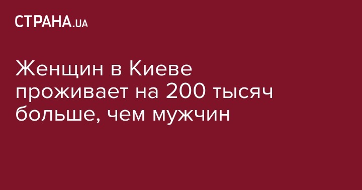 В Киеве представительниц прекрасного пола проживает на 217 000 больше, чем мужчин. Согласно статистике постоянно проживающих в Киеве людей - около 1 млн 541 тыс. составляют женщины, и почти 1 млн 324 тыс - мужчины.