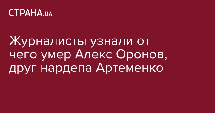 Североамериканский бизнесмен украинского происхождения Алекс Оронов, которого почему-то называют соавтором "мирного плана Артеменко", умер от рака крови. Об этом сообщает "112 Украина" со ссылкой на американское издание BuzzFeed.