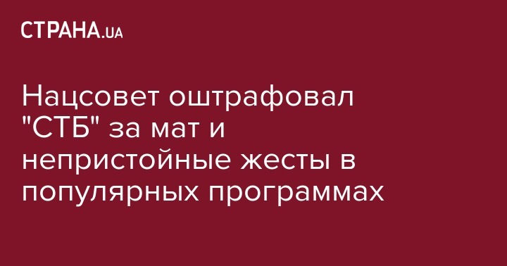 Национальный совет Украины по вопросам телевидения и радиовещания оштрафовал ЧАО "Международный Медиа Центр-СТБ" на 1,65 миллионов гривен из-за присутствия в эфире информации, которая может навредить несовершеннолетней аудитории. Об этом сообщил член Нацсовета по телевидению и радиовещанию Украины Сергей Костинский на своей странице в Facebook.