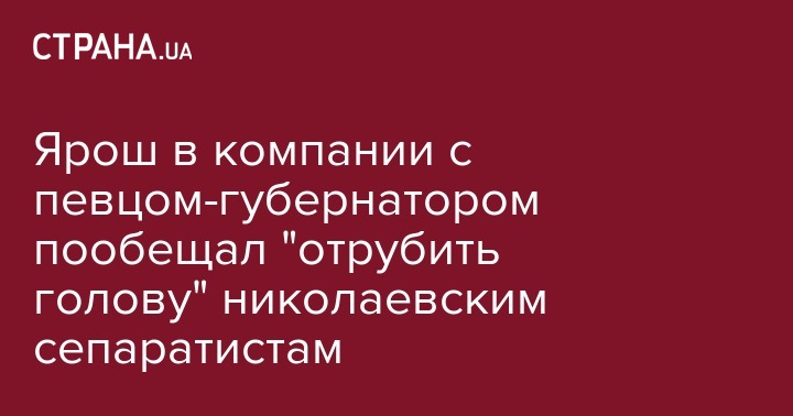 Нардеп Дмитрий Ярош намерен "отрубить головы" сепаратистским и пророссийски настроенным организациям Николаевской области. Об этом он сообщил в рамках пресс-конференции главы Николаевской областной администрации, передаёт Таймер.