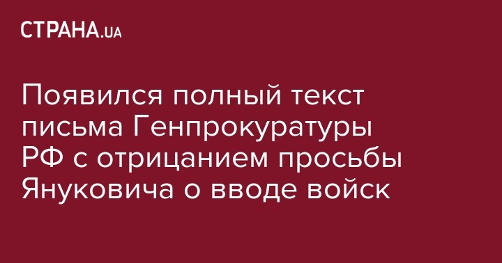 Появился полный текст письма Генпрокуратуры РФ с отрицанием просьбы Януковича о вводе войск