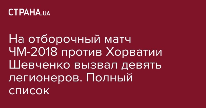 Главный тренер сборной Украины Андрей Шевченко вызвал для участия в сборах, предшествующих отборочному матча чемпионата мира-2018 года против сборной Хорватии, девять украинцев, которые выступают в иностранных чемпионатах.