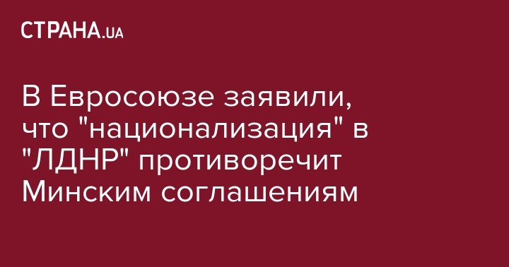 В Евросоюзе назвали несоответствующими Минским договоренностям и противоправными решения главарей в "ДНР/ЛНР" о так называемой "национализации" предприятий и использовании российской валюты на не подконтрольных правительству Украине территориях.
