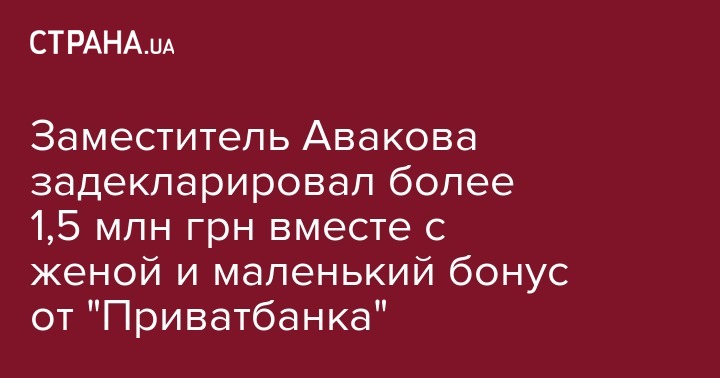 Заместитель Авакова задекларировал более 1,5 млн грн вместе с женой и маленький бонус от "Приватбанка"