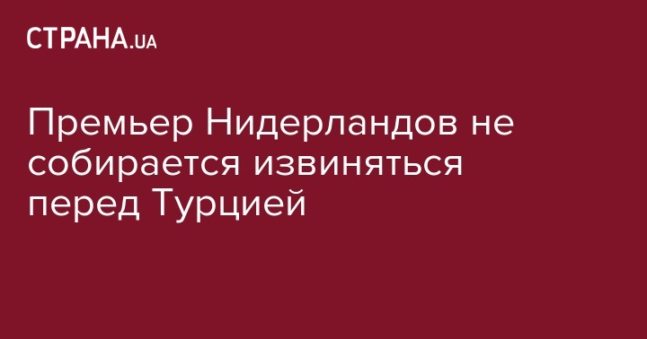 Премьер Нидерландов не собирается извиняться перед Турцией