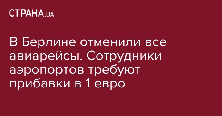 Около двух тысяч сотрудников наземных служб в берлинских аэропортах Тегель и Шёнефельд, добивающихся повышения заработной платы, начали 25-часовую забастовку. Стачка проводится по инициативе немецкого профсоюза Verdi. Работники аэропортов требуют повысить почасовую оплату труда с 11 до 12 евро.