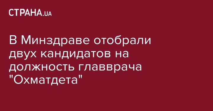 В Министерстве здравоохранения (МОЗ) Украины начали открытый отбор кандидатов на должность главного врача Национальной детской специализированной больницы "Охматдет" среди девяти человек, подавших документы. Об этом сообщила пресс-служба МОЗ.