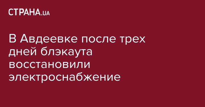 В прифронтовой Авдеевке, которая 11 марта в очередной раз осталась без воды и света из-за обстрелов, восстановили электроснабжение. Об этом в Facebook сообщил глава Донецкой военно-гражданской администрации (ВГА) Павел Жебривский.