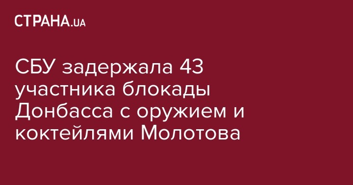 Сотрудники Службы безопасности Украины задержали в зоне проведения антитеррористической операции 43 человека с оружием.