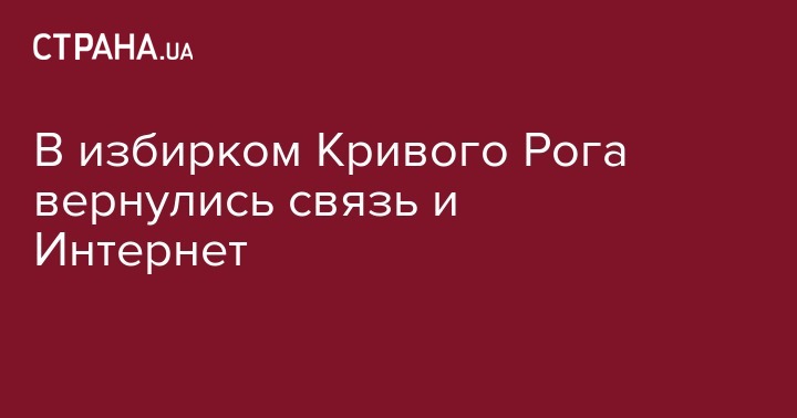 Между избирательными комиссиями в Кривом Роге восстановили связь, сообщил начальник комбинированного центра телекоммуникаций Виктор Грищенко корреспонденту УНН.