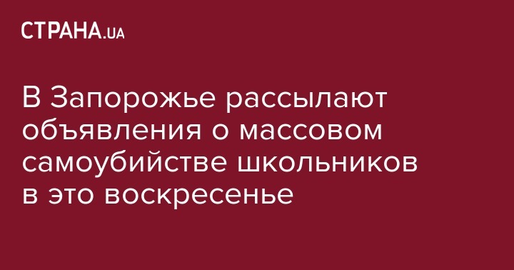 В Запорожье через соцсети и мобильные приложения кто-то рассылает сообщения о том, что 19 марта готовится массовое самоубийство школьников по всей Украине. Полиция Запорожской области сообщает, что это неправдивая информация и выясняет, кто ее транслирует.