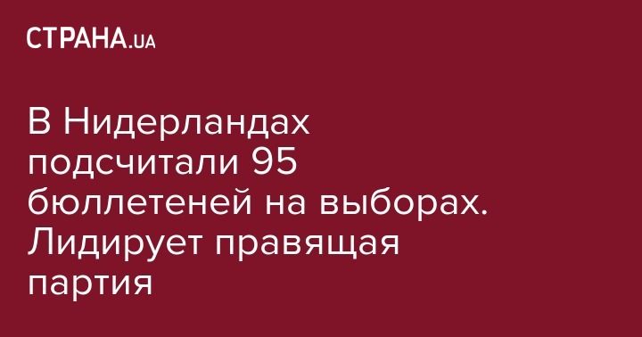 В Нидерландах подсчитали почти 95% голосов на парламентских выборах. Как и обещал экзит-пол, лидирует партия премьера-министра Марка Рютте. Об этом сообщает "Европейская правда".