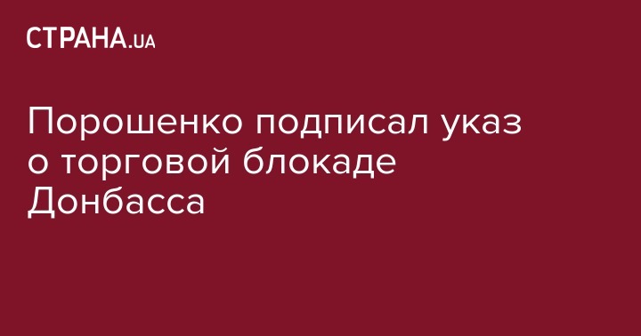 Президент Петр Порошенко подписал указ, которым вводится в действие вчерашнее решение Совета национальной безопасности и обороны Украины о транспортной блокаде Донбасса. Об этом сообщает пресс-служба главы государства.