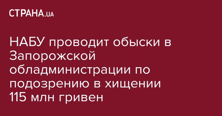 ”Следственные действия проводятся в рамках досудебного расследования уголовного производства по факту использования должностными лицами Главного управления Госгеокадастра в Запорожской области и Запорожской ОГА служебного положения с целью получения неправомерной выгоды для нескольких юридических лиц, что повлекло тяжкие последствия государственным интересам и интересам государственных предприятий на сумму около 115 млн грн”, - отметили в Бюро.