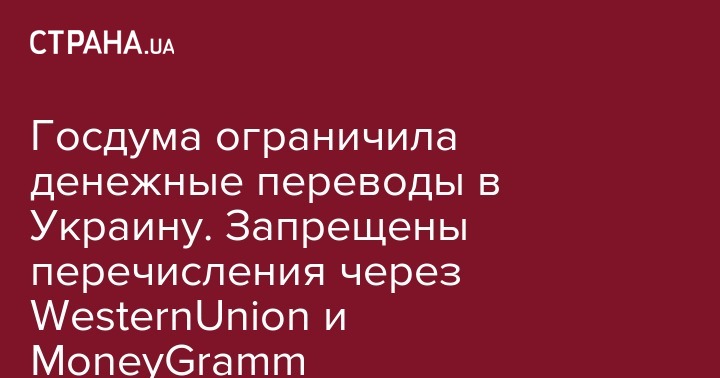 Госдума ограничила денежные переводы в Украину. Запрещены перечисления через WesternUnion и MoneyGramm