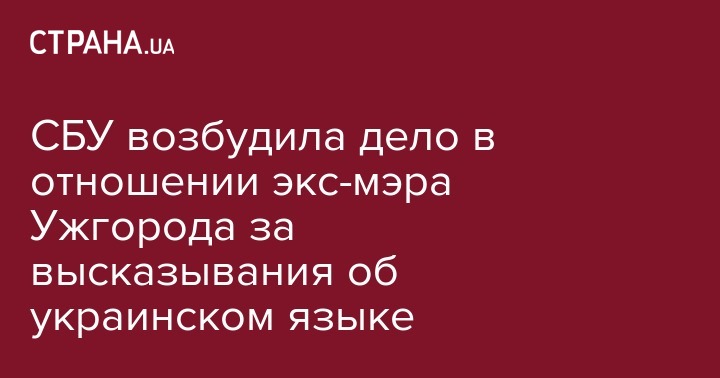 Служба безопасности Украины возбудила уголовное дело по поводу высказываний бывшего мэра Ужгорода Сергея Ратушняка об украинском языке. Об этом на своей странице в Facebook сообщила депутат Верховной Рады Ирина Подоляк.