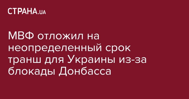 Международный валютный фонд перенес выделение Украине транша для изучения влияния блокады Донбасса на макропоказатели. Об этом пишут "Украинские новости" со ссылкой на источник в структурах, которые занимаются вопросами сотрудничества с МВФ.