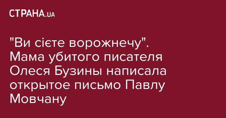 Мовчану написала письмо-ответ мама Олеся Бузины Валентина Бузина. Валентина Павловна передала письмо в редакцию "Страны".