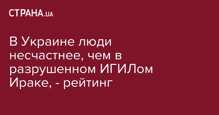 Судя по рейтингу, украинцы более несчастливы, чем иракцы, у которых значительную часть территорий захватили боевики "Исламского государства", жители Камеруна, Судана, Эфиопии, Пакистана и огромного количества других отсталый африканских, ближневосточных и азиатских стран.