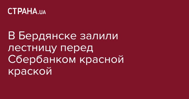 В Бердянске залили лестницу перед Сбербанком красной краской