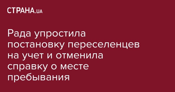 Рада исключила из перечня документов, в которые вносятся сведения о месте пребывания лица, справку о взятии на учет внутренне перемещенного лица.