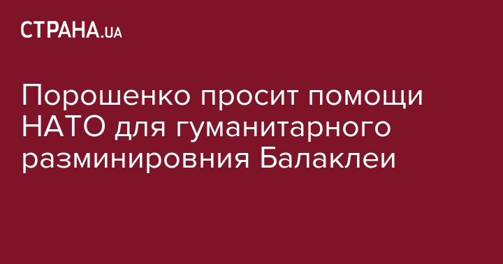 "Дал срочное поручение МИД, Минобороны и ГСЧС привлечь помощь НАТО для гуманитарного разминирования в Балаклее", – написал Порошенко в своем twitter-микроблоге.