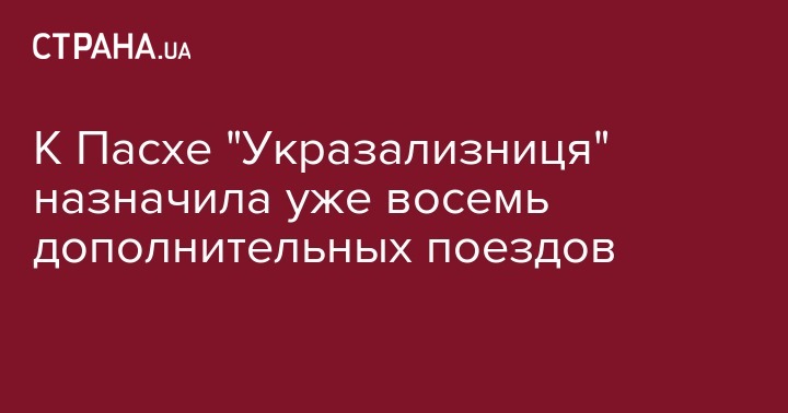 Как сообщала "Страна", "Укрзализниця" назначила шесть дополнительных поездов на Пасху - из Киева в Харьков, Львов, Ковель и Днепр, а также из Львова и Харькова до Ужгорода.