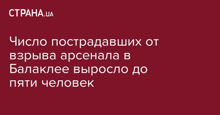 Число жителей Балаклеи и окрестностей, пострадавших от взрывов арсенала, увеличилось до пяти человек. Сегодня стало известно о пострадавшей женщине, сообщила заместитель начальника управления здравоохранения Харьковской областной государственной администрации Галина Сироштан.