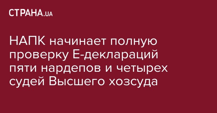 Национальное агентство по предупреждению коррупции (НАПК) начинает полную проверку деклараций 11 лиц, уполномоченных на выполнение функций государства или местного самоуправления, среди которых четверо судей Высшего хозяйственного суда Украины.