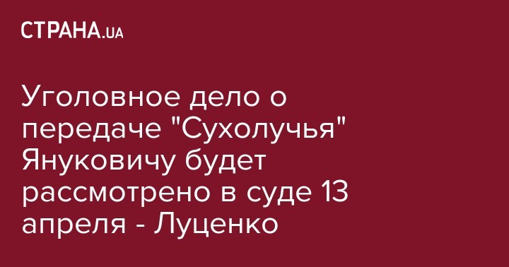 Уголовное дело о передаче "Сухолучья" Януковичу будет рассмотрено в суде 13 апреля - Луценко