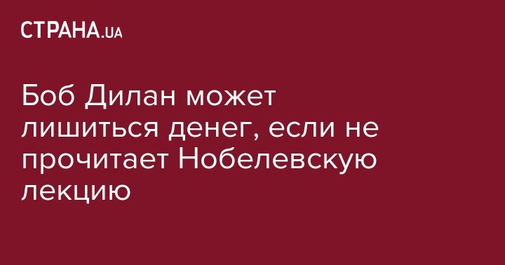 Нобелевский лауреат по литературе 2016 года Боб Дилан может лишиться денежного вознаграждения за премию, если не прочтет традиционную Нобелевскую лекцию до 10 июня 2017 года.