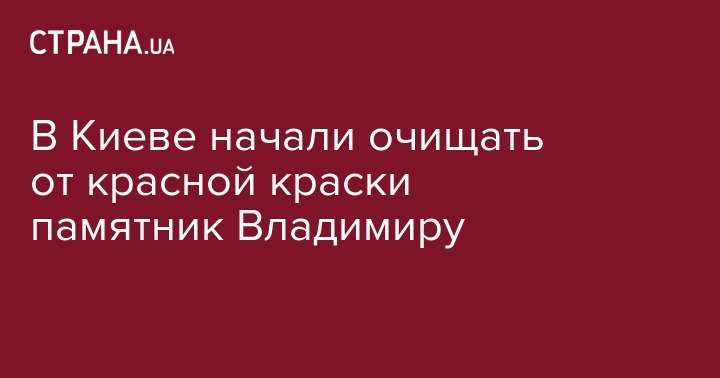 В Киеве начали отмывать от красной краски старейший столичный памятник князю Владимиру, который облили еще еще осенью прошлого года. Об этом сообщила гендиректор Киевского научно-методического центра по охране, реставрации и использованию памятников истории, культуры и заповедных территорий Ирина Прокопенко, передает издание "Сегодня".
