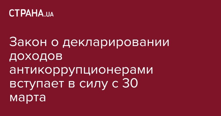 Закон о декларировании доходов антикоррупционерами вступает в силу с 30 марта
