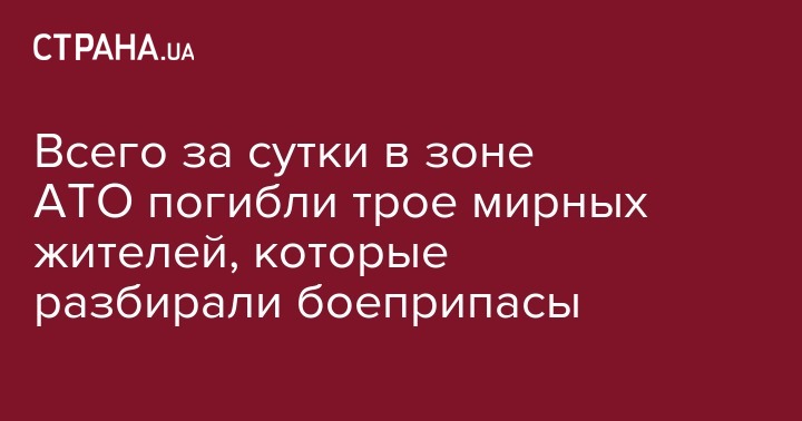 Всего за сутки в зоне АТО погибли трое мирных жителей, которые разбирали боеприпасы