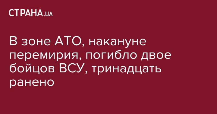 В зоне АТО, накануне перемирия, погибло двое бойцов ВСУ, тринадцать ранено