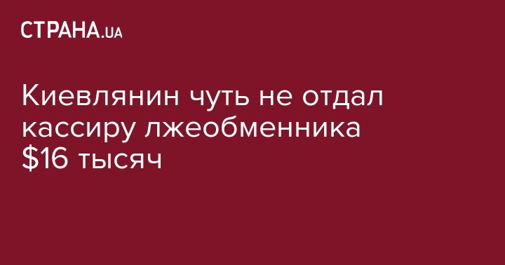 Киевлянин чуть не отдал кассиру лжеобменника $16 тысяч