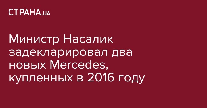 Кроме того, Насалик задекларировал покупку 2 новых автомобиля Mercedes суммарной стоимостью 3,8 млн гривен в 2016 году.