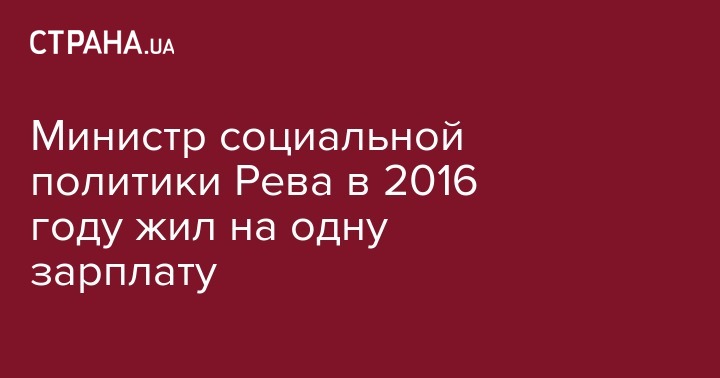 Весь доход Ревы составила заработная плата, а семья министра (мать и супруга) задекларировала за прошлый год 98 757 гривен доходов. На его банковских счетах размещено 3 964 гривны, у жены - 1 532 гривны. Кроме того, министр задекларировал 368 000 гривен наличных средств.