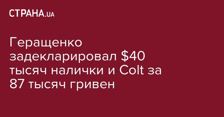 Наличными Геращенко задекларировал 440 тыс грн, а также $40 тыс.