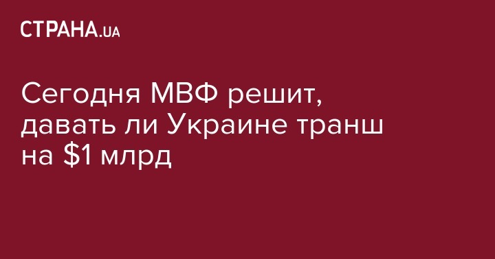 Сегодня МВФ решит, давать ли Украине транш на $1 млрд