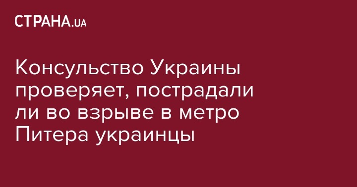 Генеральному консульству Украины в Санкт-Петербурге поручено проверить информацию о том, были есть ли среди пострадавших во взрыве в метро Санкт-Петербурга граждане Украины.